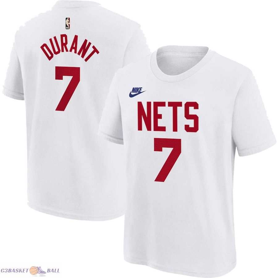 Youth Brooklyn Nets Kevin Durant White 2022/23 Classic Edition Name & Number T-Shirt
